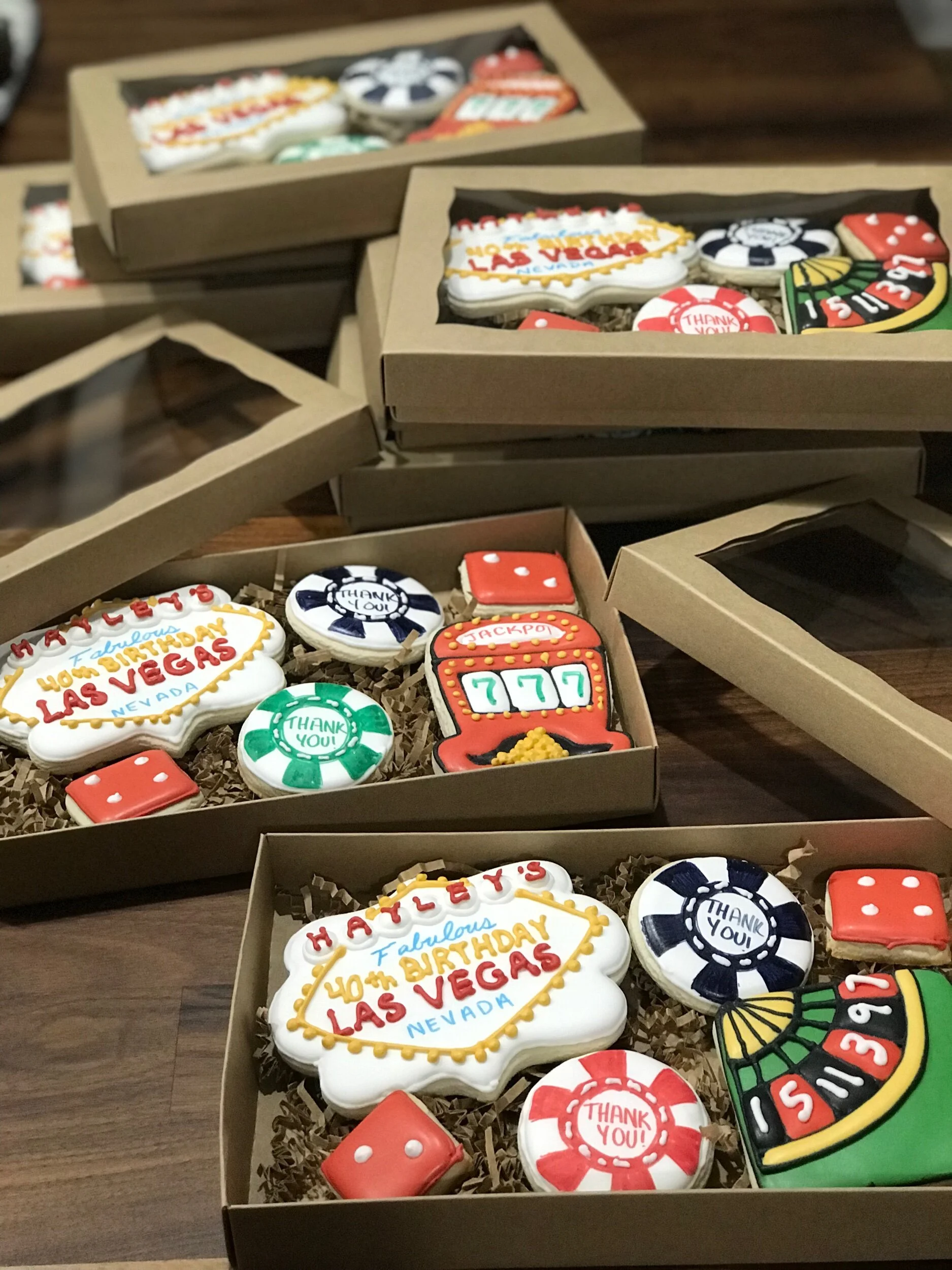 Gift boxes for her family and friends ... how thoughtful is that!! Hayley Parker thank you so much, I hope your Vegas birthday was a blast!! #VegasCookies #cookies #royalicing #decoratedcookies #sugarcookies #sweetlyinspired #TampaBayBakers #TampaSmallBusiness #RoyalIcingCookies www.sweetlyinspiredlife.com