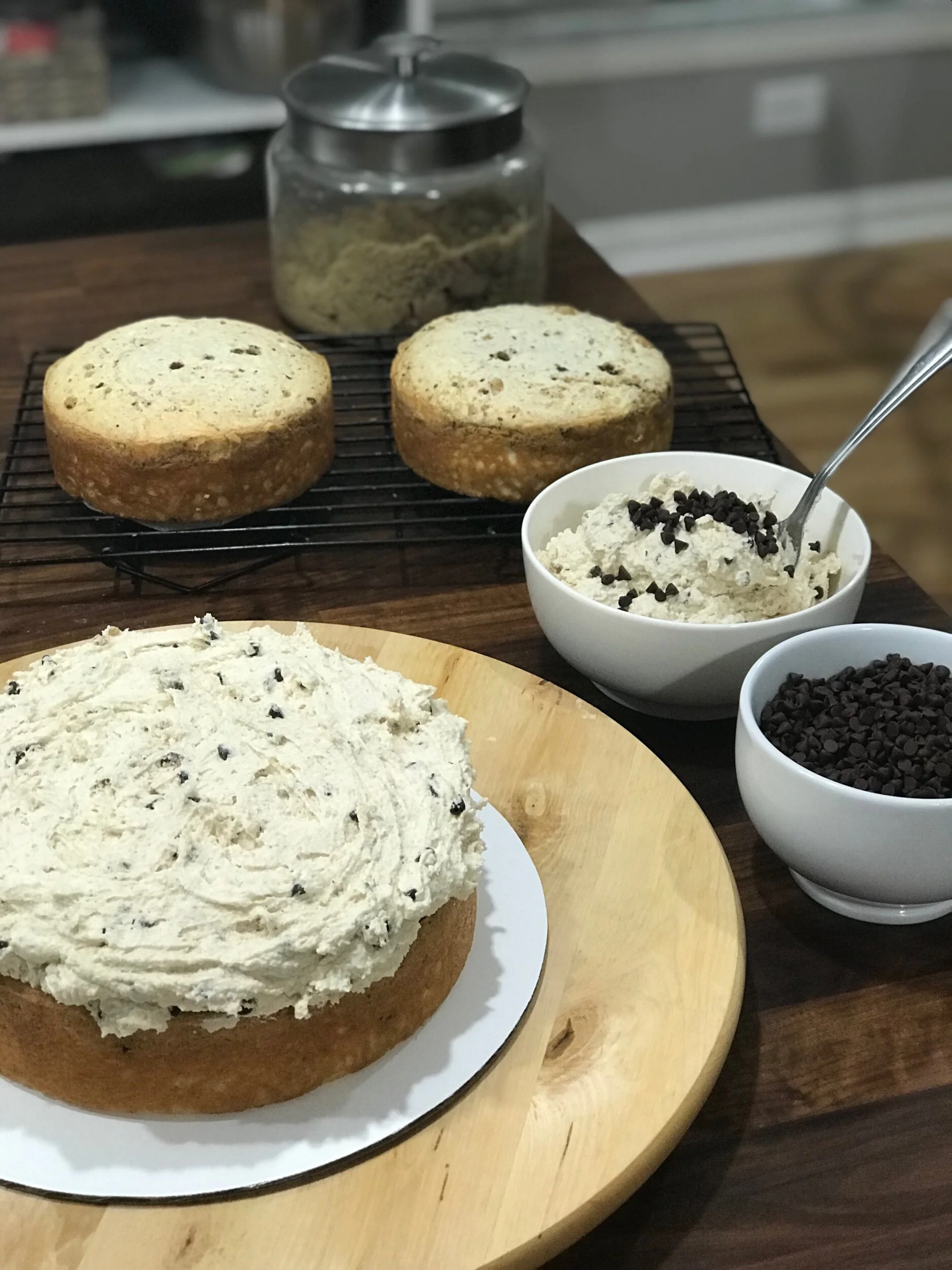 Love making cakes to match the cookies. Here’s the inside scoop on this creation. Cookie crumb cake with cookie dough icing filling.....yummmmm!! #Cakes #CookieDoughCake #CookieDough #ChocolateChips #SweetlyInspired #TampaBayBakers #TampaSmallBusiness www.sweetlyinspiredlife.com