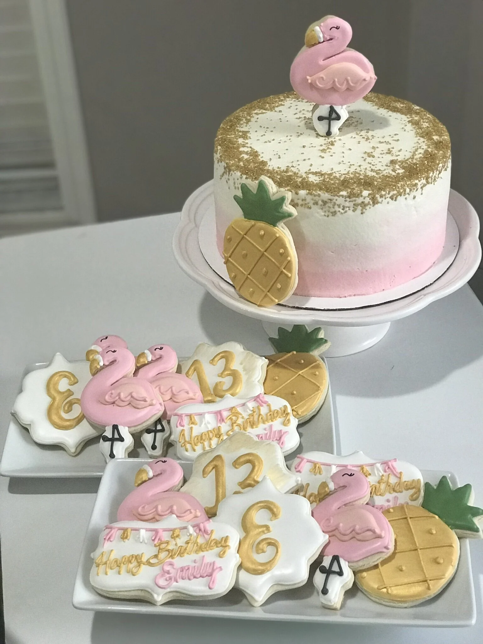 Happy 13th Birthday Emily!! Monica Oliver I just can’t thank you enough for this super fun theme. #flamingocookies #pineapplecookies #pinkandgold #decoratedcookies #sugarcookies #royalicingcookies #royalicing #sweetlyinspired #tampabaybakers #tampasmallbusiness www.sweetlyinspiredlife.com
