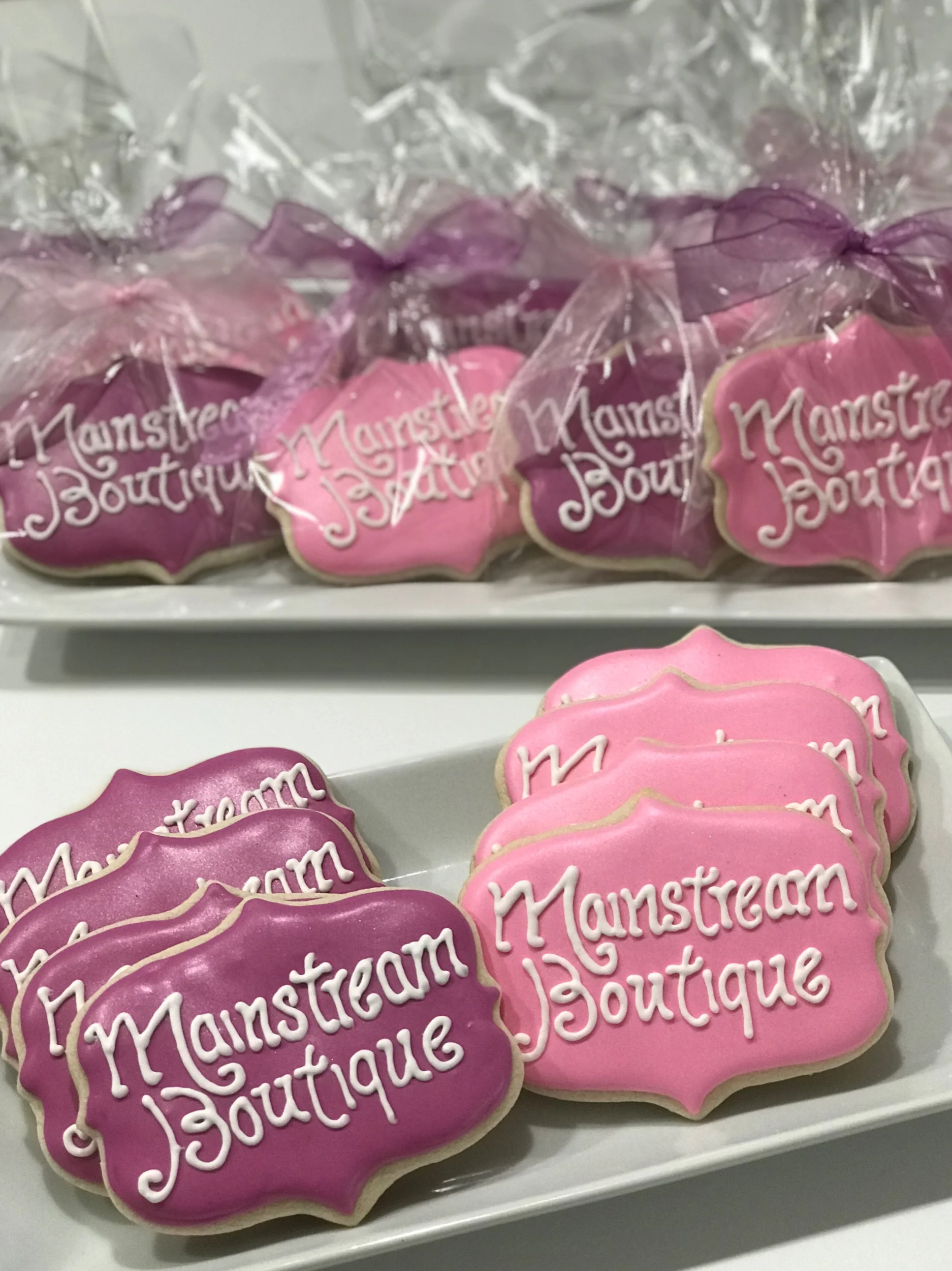 Some fun logo cookies for a special customer appreciation event. Thank you Kambria Sims and Mainstream Boutique! #decorated cookies #SugarCookies #RoyalIcing #RoyalIcingCookies #MainstreamBoutique #CustomerAppreciation www. Sweetpeainspired life.com