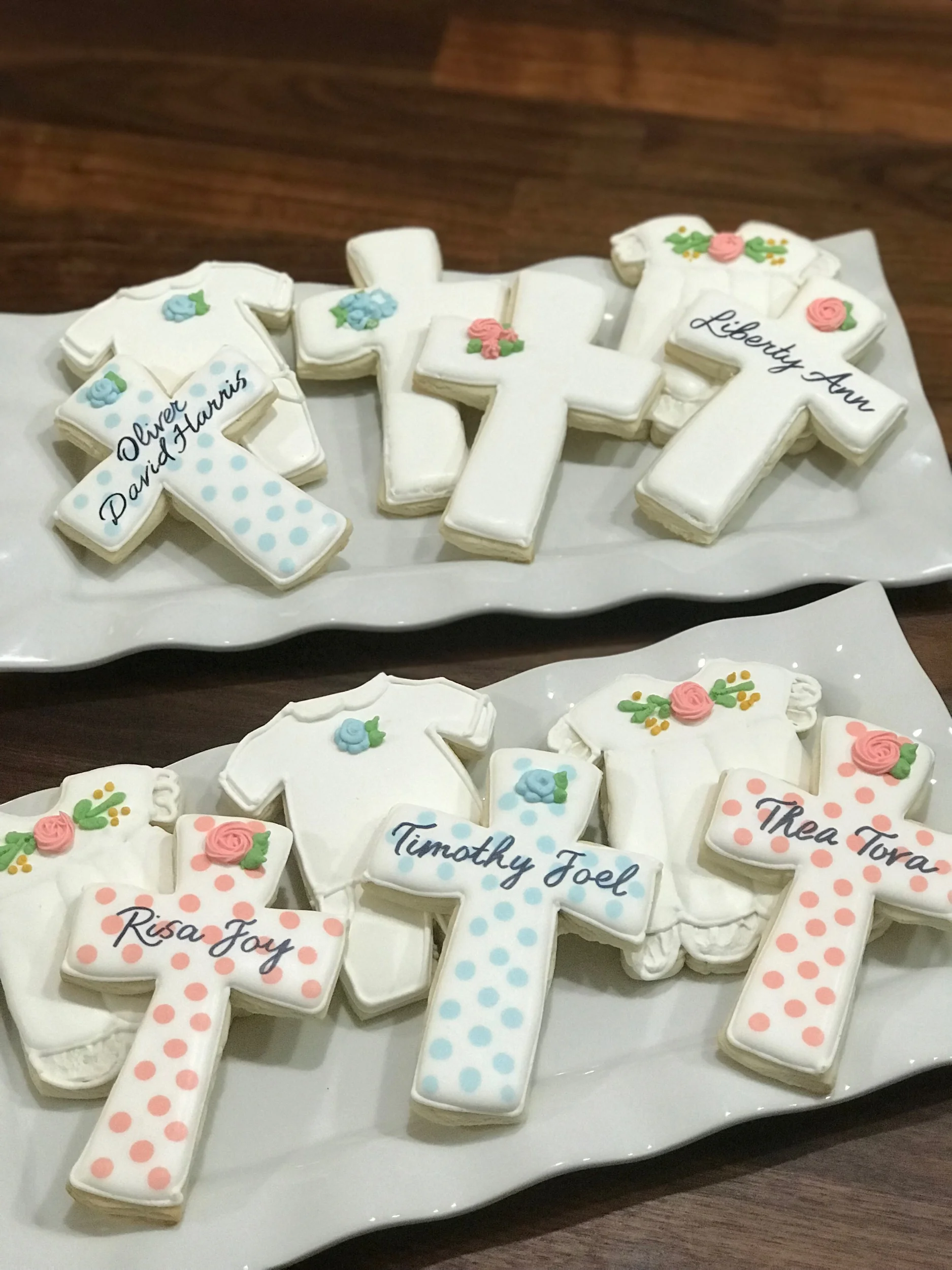 Baby dedication cookies! Thank you so much Beth Dare and Michele Cole! #BabyDedicationCookies #DecoratedCookies #RoyalIcingCookies #RoyalIcing #TampaBayBakers #TampaSmallBusiness #SweetlyInspired www.sweetlyinspiredlife.com
