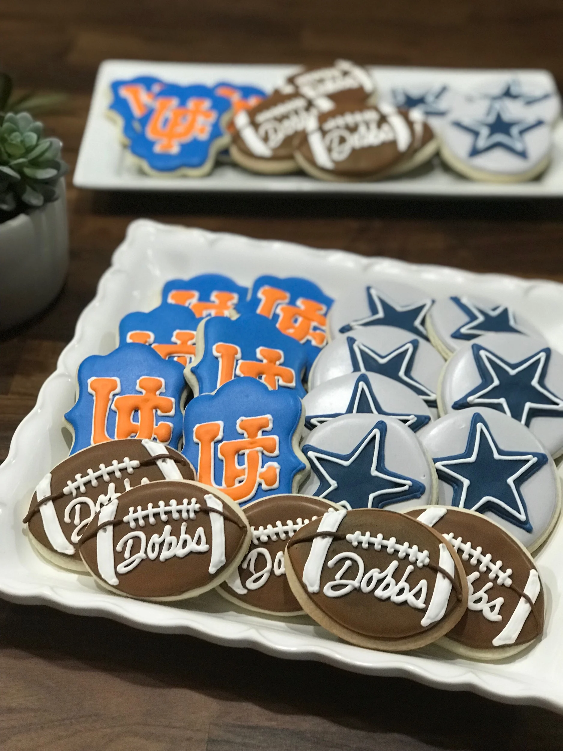 #babyshower #decoratedcookies #royalicing #royalicingcookies #gators #cowboys #footballcookies #sweetlyinspiredlife www.sweetlyinspiredlife.com