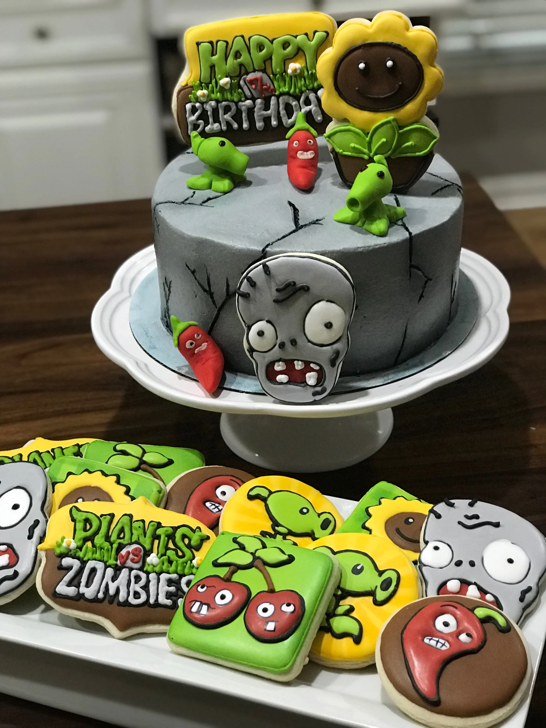 Plants Vs Zombies is in the top 5 of most favorite themes ever!! I can’t thank you enough Sabrina Gabet-Coleman for this order. #plantsvszombies #DecoratedCookies #RoyalIcingCookies #RoyalIcing #BirthdayCookies #TampaBayBakers #Bakery #tampasmallbusiness #plantsvszombiesparty #plantsvszombiescake #plantsvszombiescookies www.sweetlyinspiredlife.com