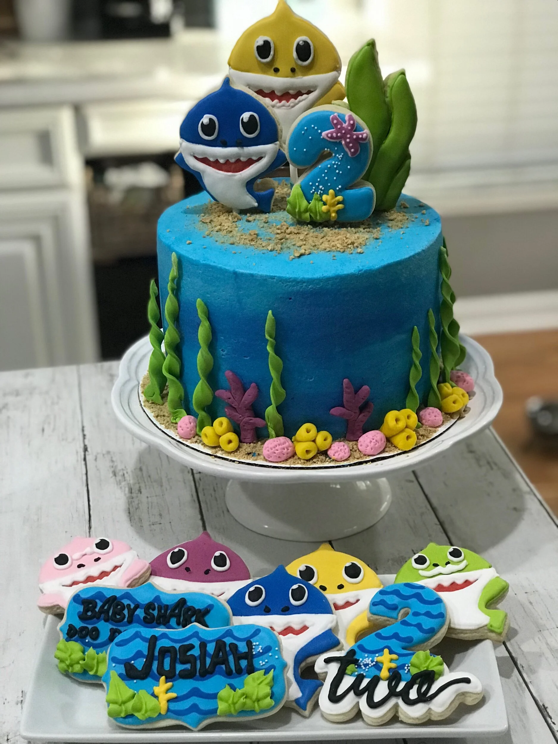 This cake and cookie order was so fun to make!! Thank you so much Elizabeth Machado!! #babysharkcake #babysharkcookies #cookies #royalicing #decoratedcookies #sugarcookies #sweetlyinspired #TampaBayBakers #TampaSmallBusiness #RoyalIcingCookies www.sweetlyinspiredlife.com