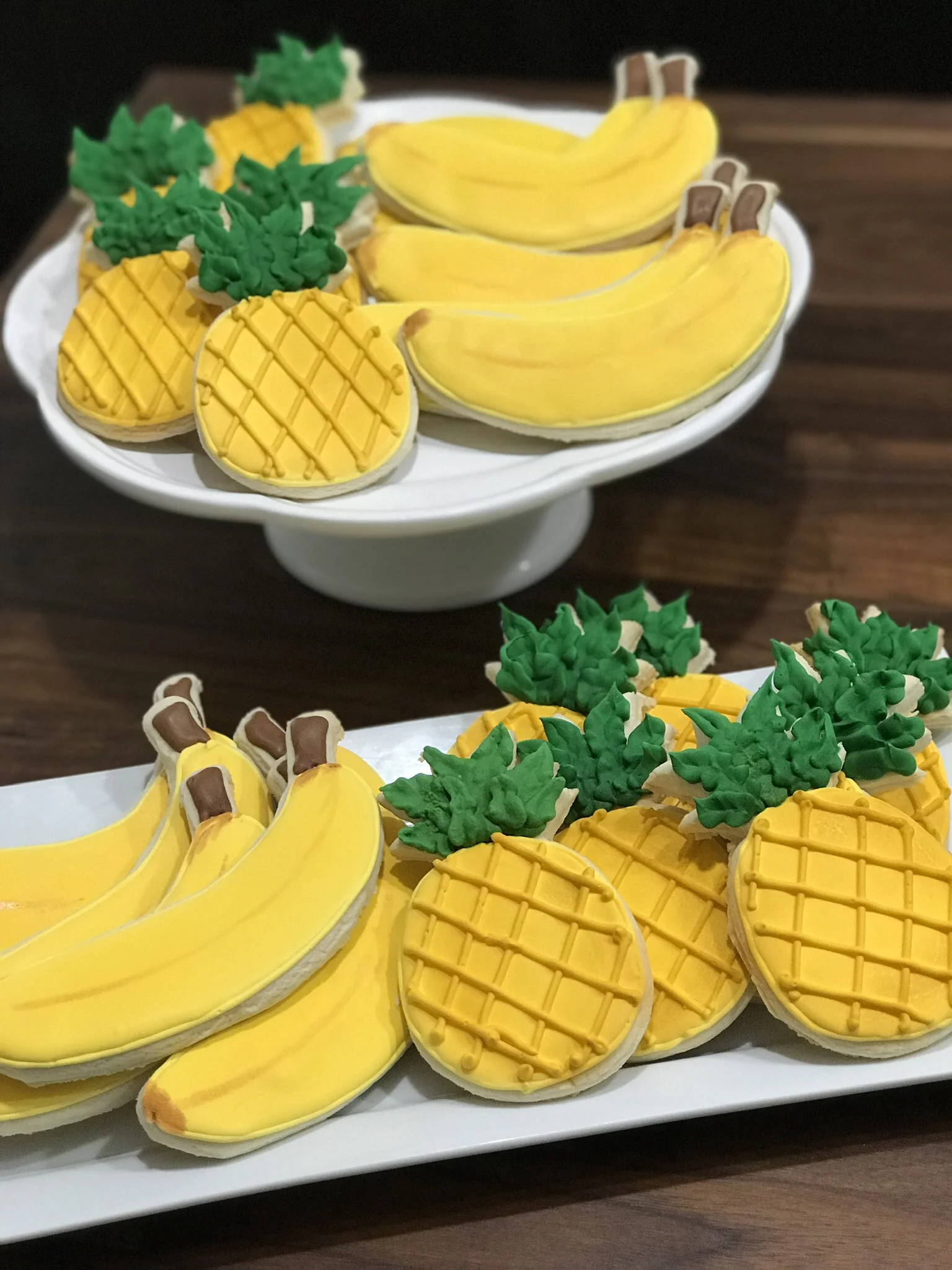 My kind of Fruit! Thank you Nicole Sass Lynn for another super fun order!!! #decoratedcookies #royalicingcookies #royalicing #sugarcookies #pineapple #banana #tampabaybakers #sweetlyinspired www.sweetlyinspiredlife.com