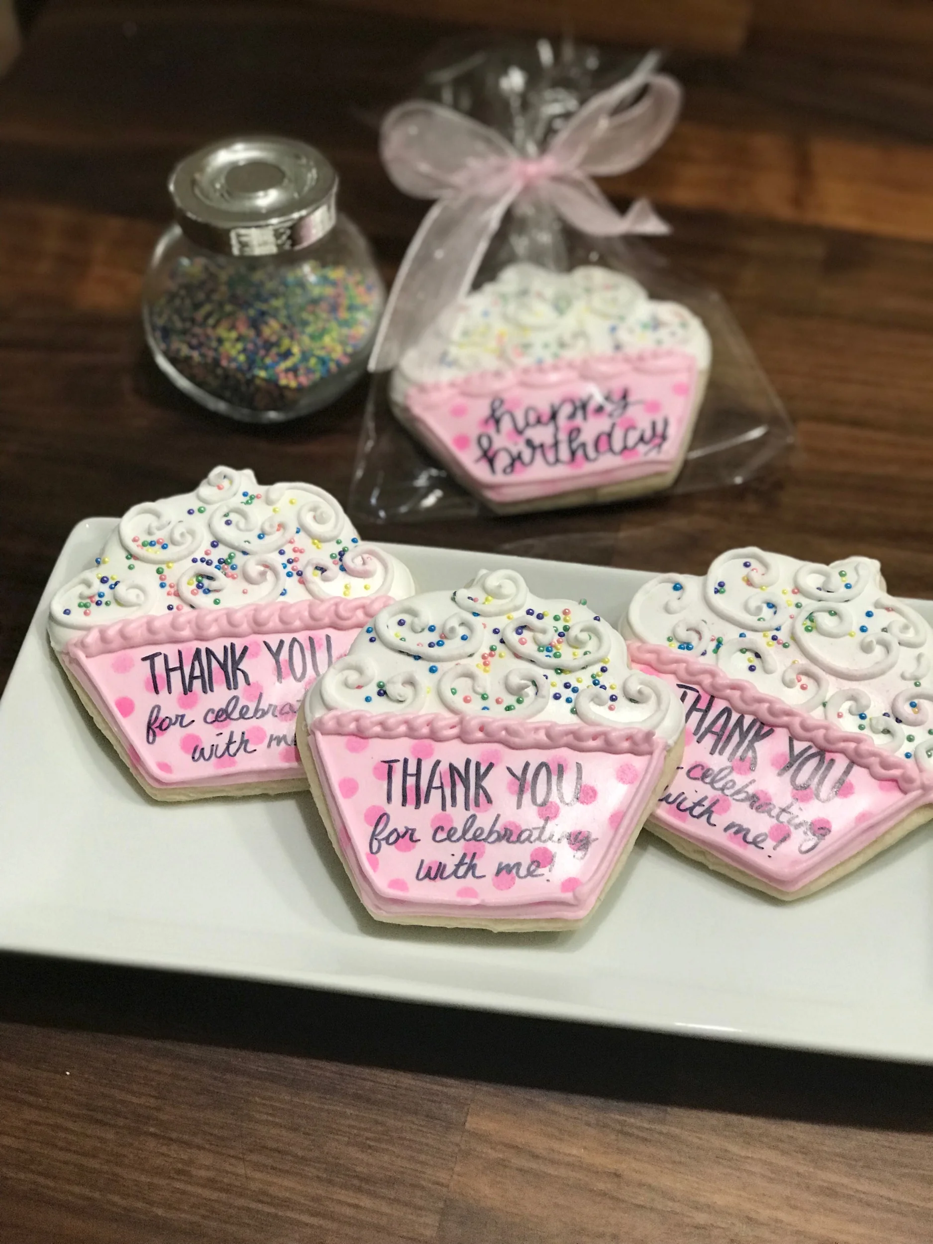 Birthday treats for a special girl and her three friends! Thank you so much Monica Klein for your constant support! Ps... so sorry it’s taken me so long to post this😘. #CupcakeCookies #BirthdayTreats #DecoratedCookies #RoyalIcingCookies #Royalicing #TampaBayBakers #TampaSmallBusiness #SweetlyInspired #SugarCookies #BirthdayCookies. www. sweetlyinspiredlife.com