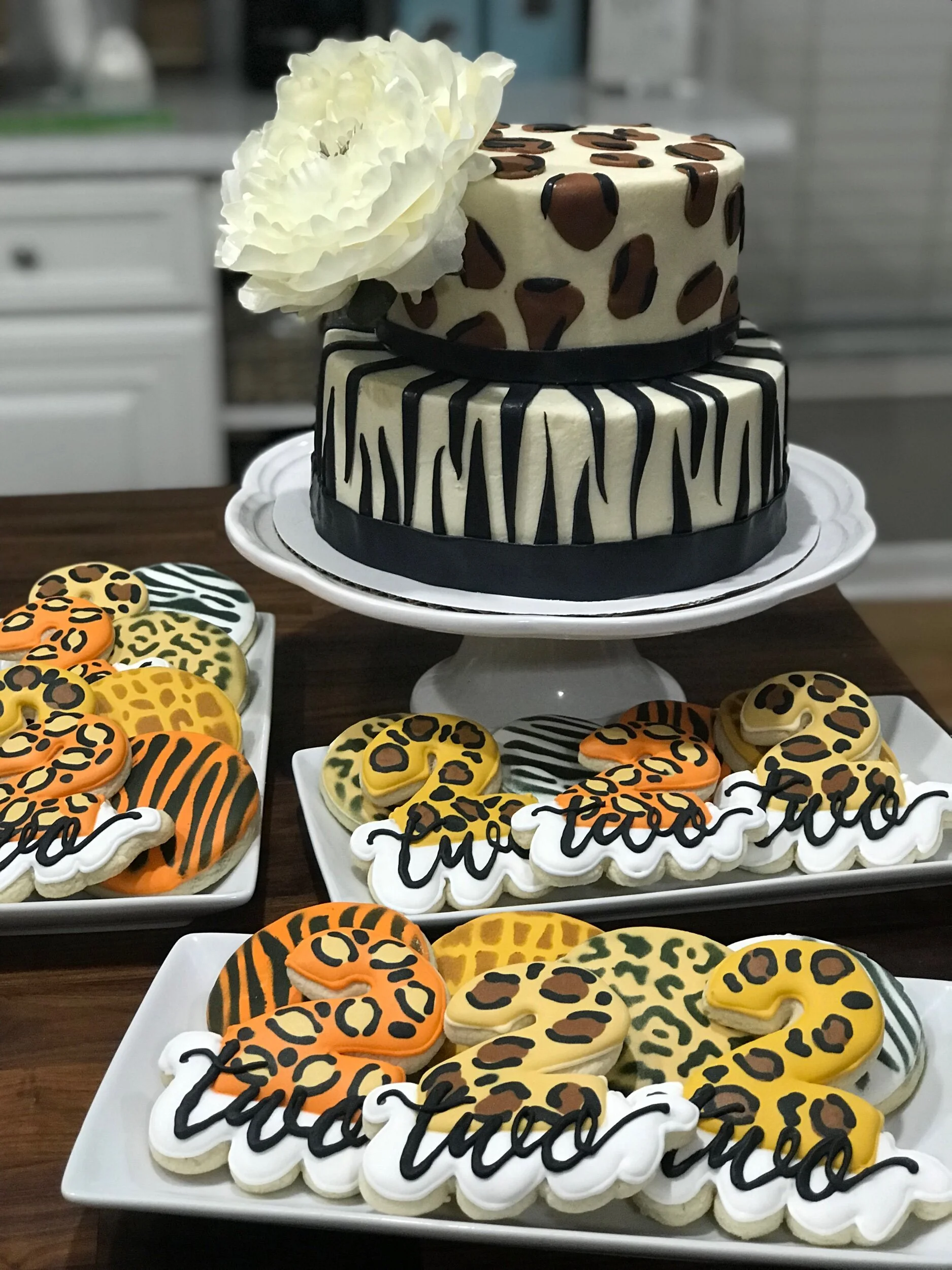 Vanilla cake with strawberry and cream filling is becoming the new favorite! Loved making this cake and cookies!!! Thank you so much Michele Noury! #strawberryandcreamcake #animalprintcake #animalprint #cookies #royalicing #decoratedcookies #sugarcookies #sweetlyinspired #TampaBayBakers #TampaSmallBusiness #RoyalIcingCookies www.sweetlyinspiredlife.com
