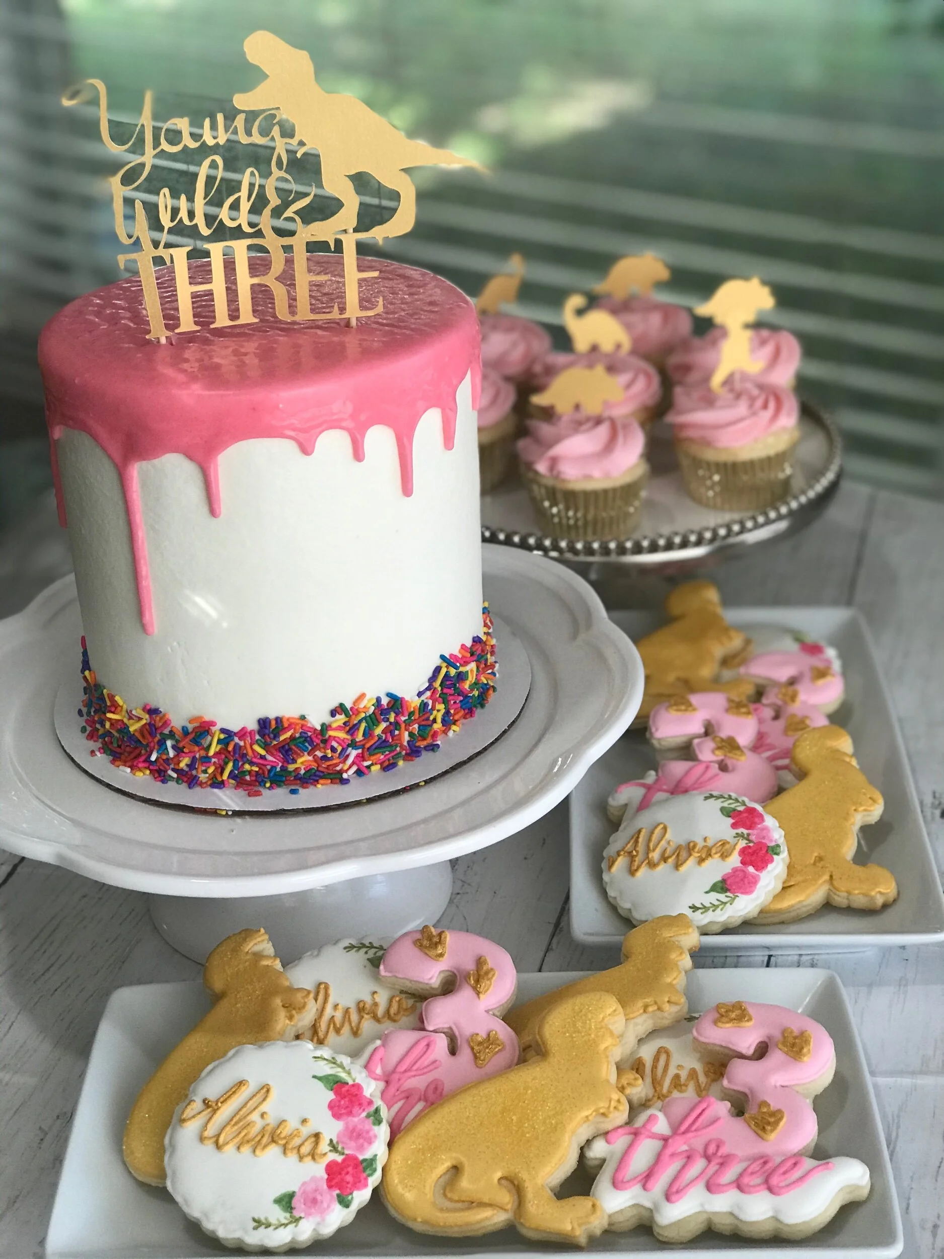 Young wild and three and lovin her dinosaurs! Happy Birthday Alivia!! Thank you so much Alisha for another cute as heck theme!! #DinosaurCaves #YoungWildAnd3 #DinosaurCookies #cookies #royalicing #decoratedcookies #sugarcookies #sweetlyinspired #cupcakes #cakes #TampaSmallBusiness #supportsmallbusiness #RoyalIcingCookies www.sweetlyinspiredlife.com
