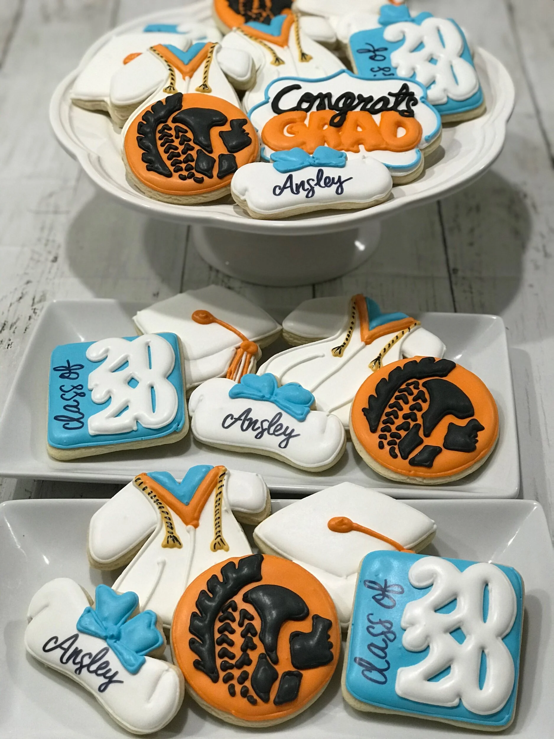 I love these school colors!! Congratulations Ansley, you have one super awesome aunt!! Thank you Gina Bokas!! #boonehighschool #orangecounty #GraduationCookies #cookies #royalicing #decoratedcookies #sugarcookies #sweetlyinspired #cupcakes #cakes #TampaSmallBusiness #supportsmallbusiness #RoyalIcingCookies www.sweetlyinspiredlife.com