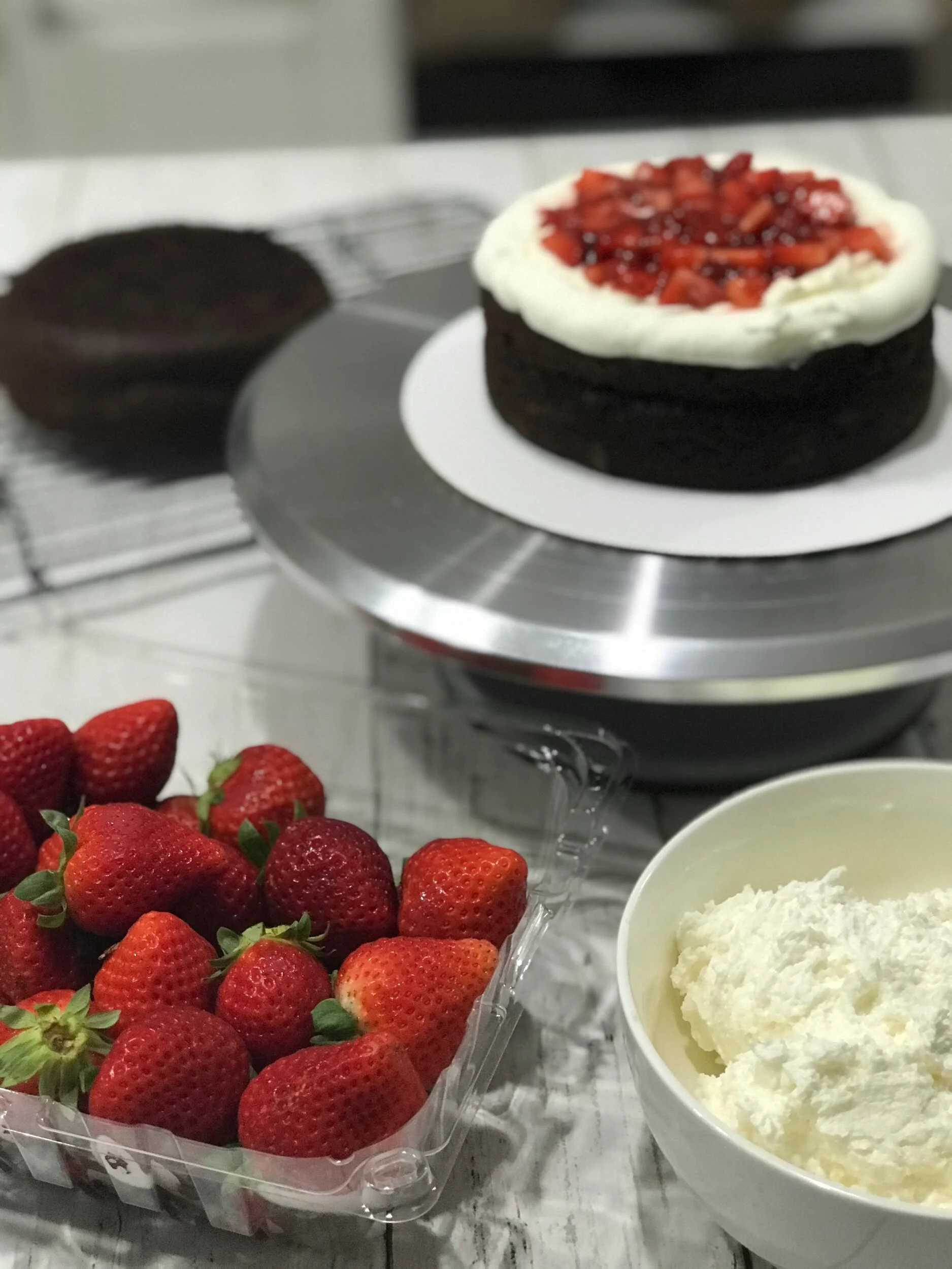 Strawberry and cream filling is quickly becoming a favorite! #strawberryandcream #cake #strawberry #cookies #royalicing #decoratedcookies #sugarcookies #sweetlyinspired #TampaBayBakers #TampaSmallBusiness #RoyalIcingCookies www.sweetlyinspiredlife.com
