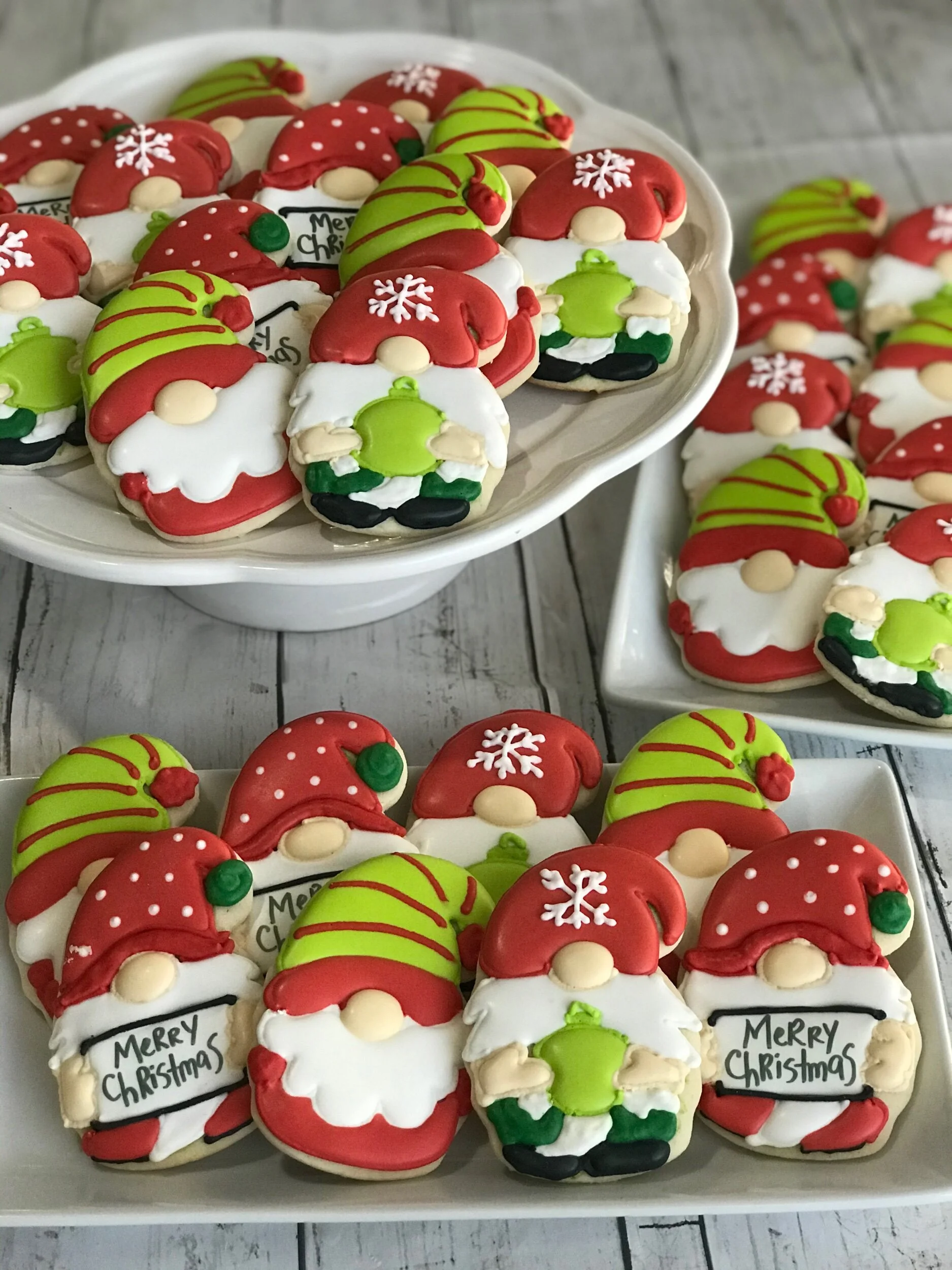 Christmas gnomes are the cutest!! Thank you so much Laurie Rivera and Kathy Sapp!!!! These little guys were so fun to make! #christmasgnomes #cookies #royalicing #decoratedcookies #sugarcookies #sweetlyinspired #cupcakes #cakes #TampaSmallBusiness #supportsmallbusiness #RoyalIcingCookies www.sweetlyinspiredlife.com