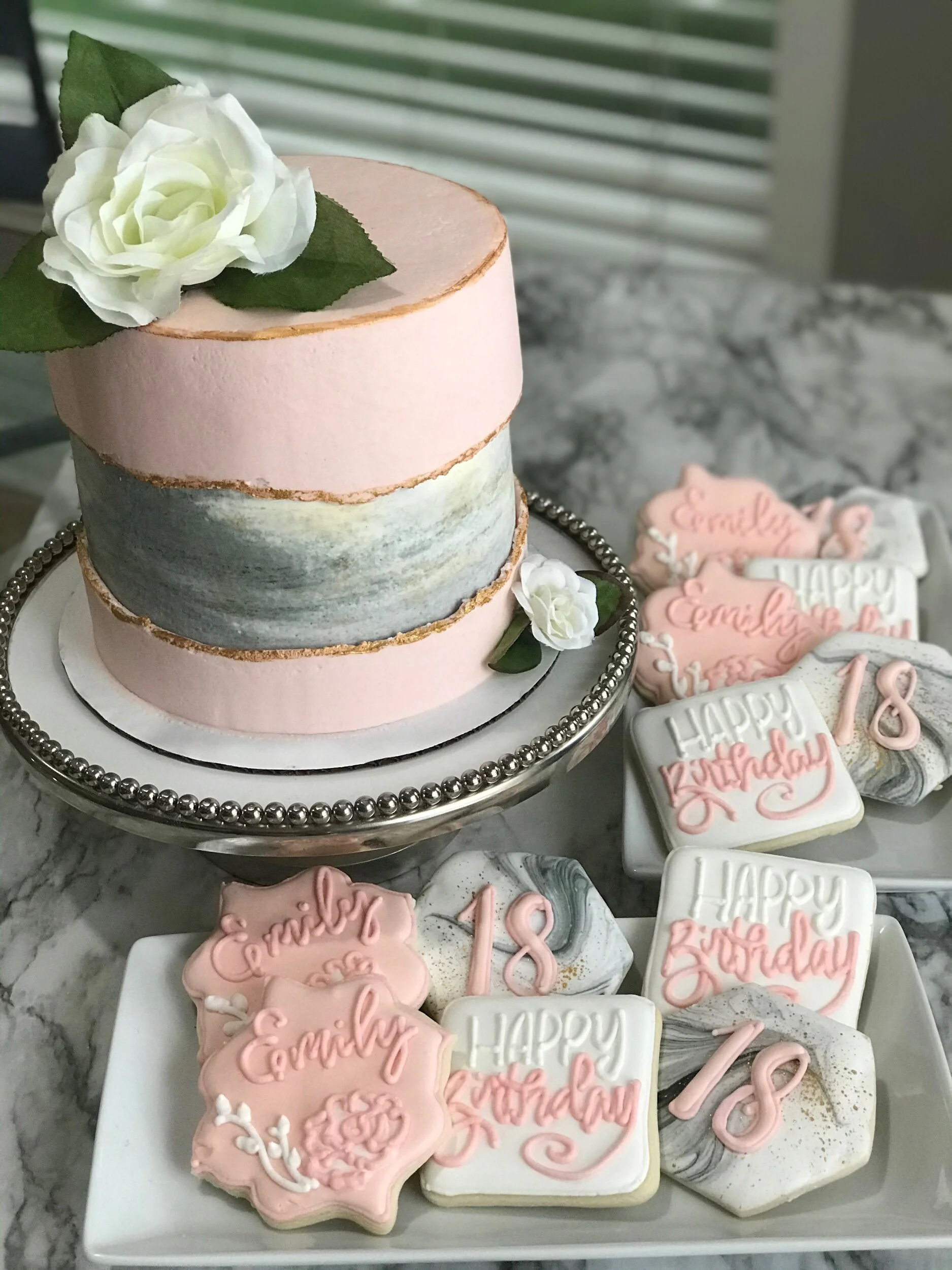 Lovin this modern elegant look!! Hope you had a fabulous birthday Emily!! So great seeing you Julie, I’m looking forward to the next celebration!! #marblecakes #pinkcake #birthdaycookies #cookies #royalicing #decoratedcookies #sugarcookies #sweetlyinspired #cupcakes #cakes #TampaSmallBusiness #supportsmallbusiness #RoyalIcingCookies www.sweetlyinspiredlife.com