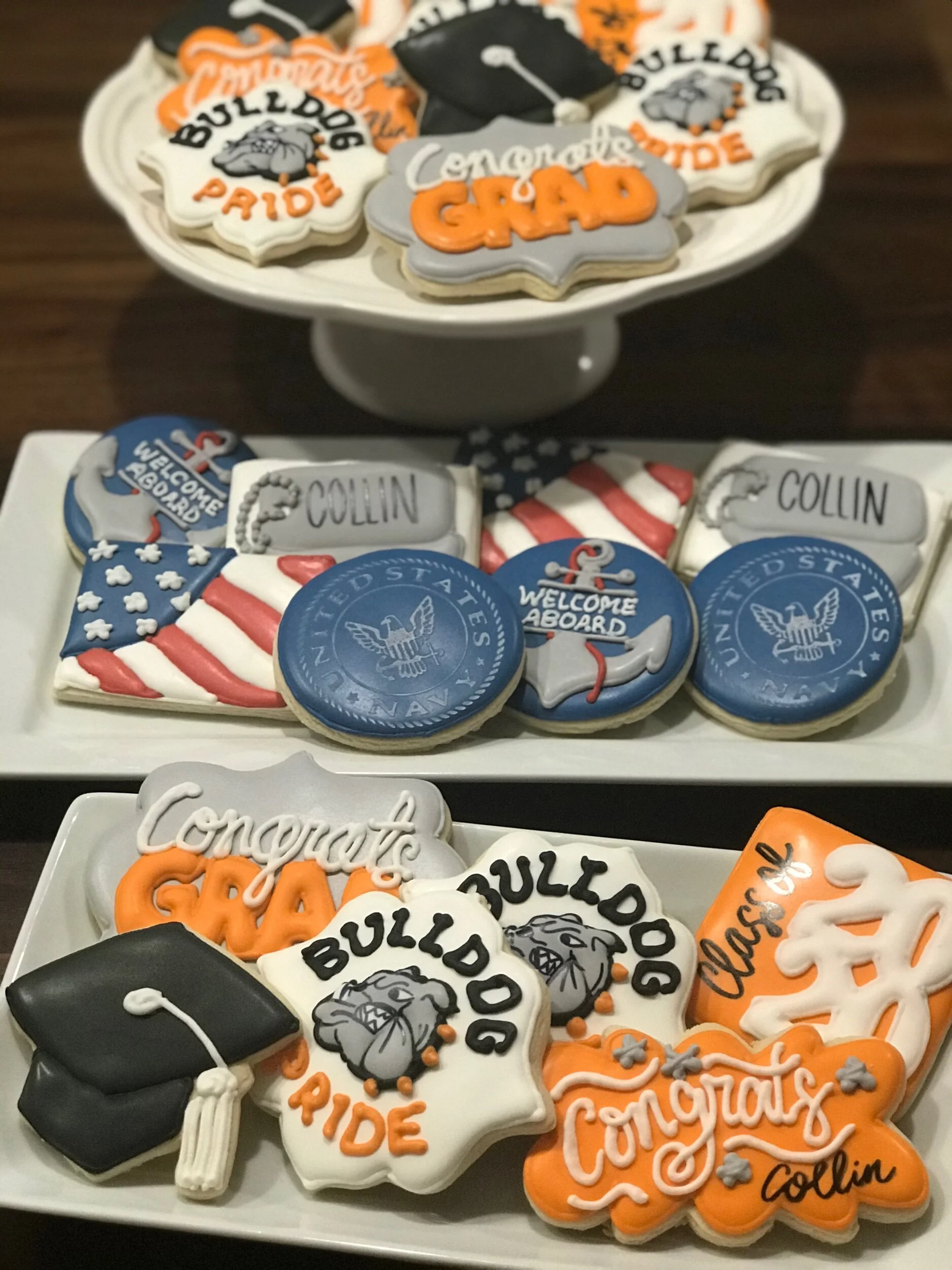 Goodbye bulldogs, Hello Navy!! Graduation Collin!! Thank you so much Julie Cotton! #GraduationCookies #NavyCookies #zephyrhillshighschool #cookies #royalicing #decoratedcookies #sugarcookies #sweetlyinspired #cupcakes #cakes #TampaSmallBusiness #supportsmallbusiness #RoyalIcingCookies www.sweetlyinspiredlife.com
