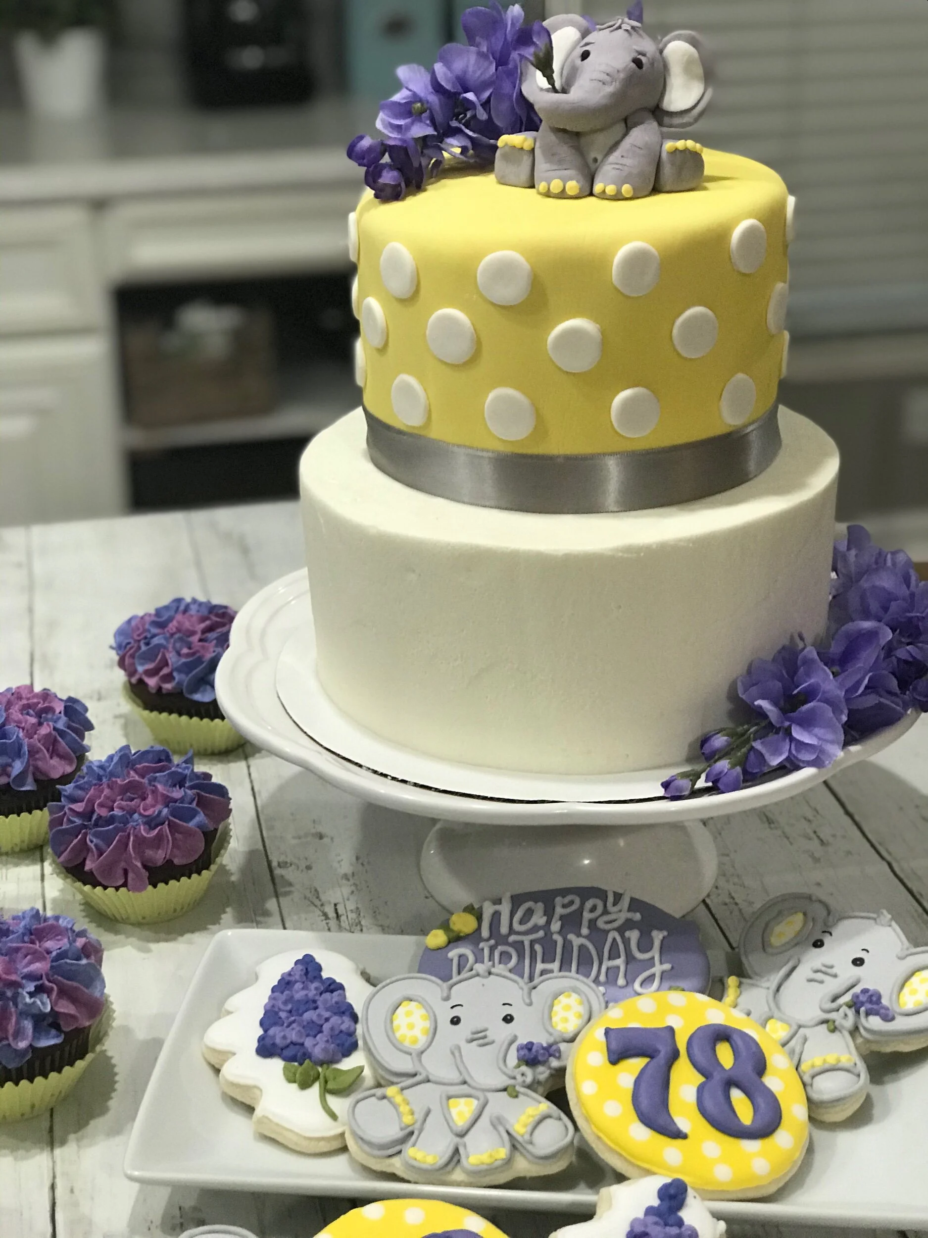 Happy Birthday Roberta!!!! Jackie and Shannon Deutscher, I can not begin to thank you enough for this order. It was an absolute pleasure to make this for your mom Jackie, I hope you guys enjoyed everything😊 #YellowAndPurple #ElephantCookies #ElephantCake #Lilacs #LilacCake #LilacCupcakes #LilacCookies #BirthdayCookies #cookies #royalicing #decoratedcookies #sugarcookies #sweetlyinspired #TampaBayBakers #TampaSmallBusiness #RoyalIcingCookies www.sweetlyinspiredlife.com