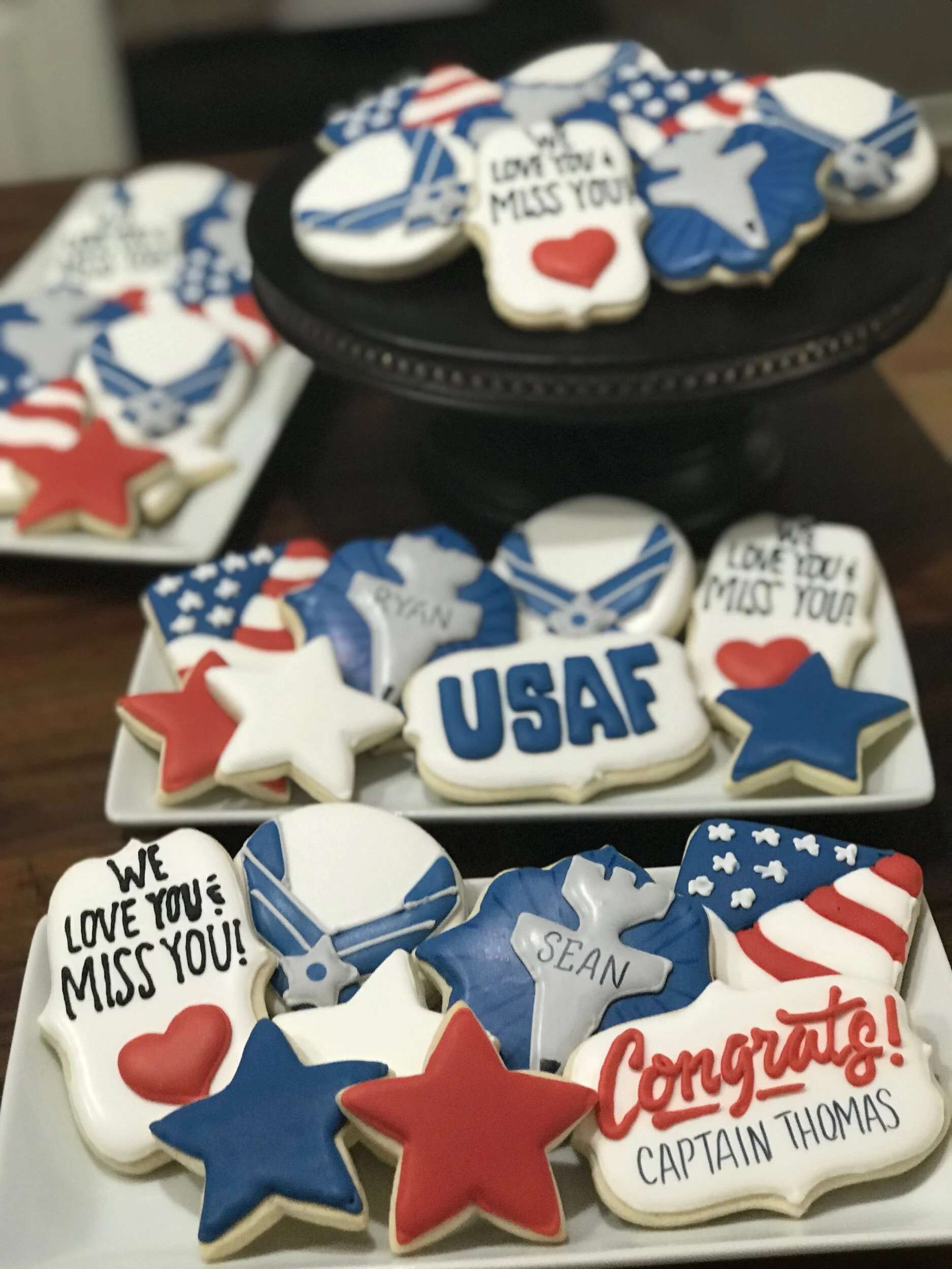 Congrats Sean!!! We are so proud of you!!! You’ve got one amazing girl, thank you so much Chelsea!! #AirForce #AirForceCookies #Captain #cookies #royalicing #decoratedcookies #sugarcookies #sweetlyinspired #TampaBayBakers #TampaSmallBusiness #RoyalIcingCookies www.sweetlyinspiredlife.com