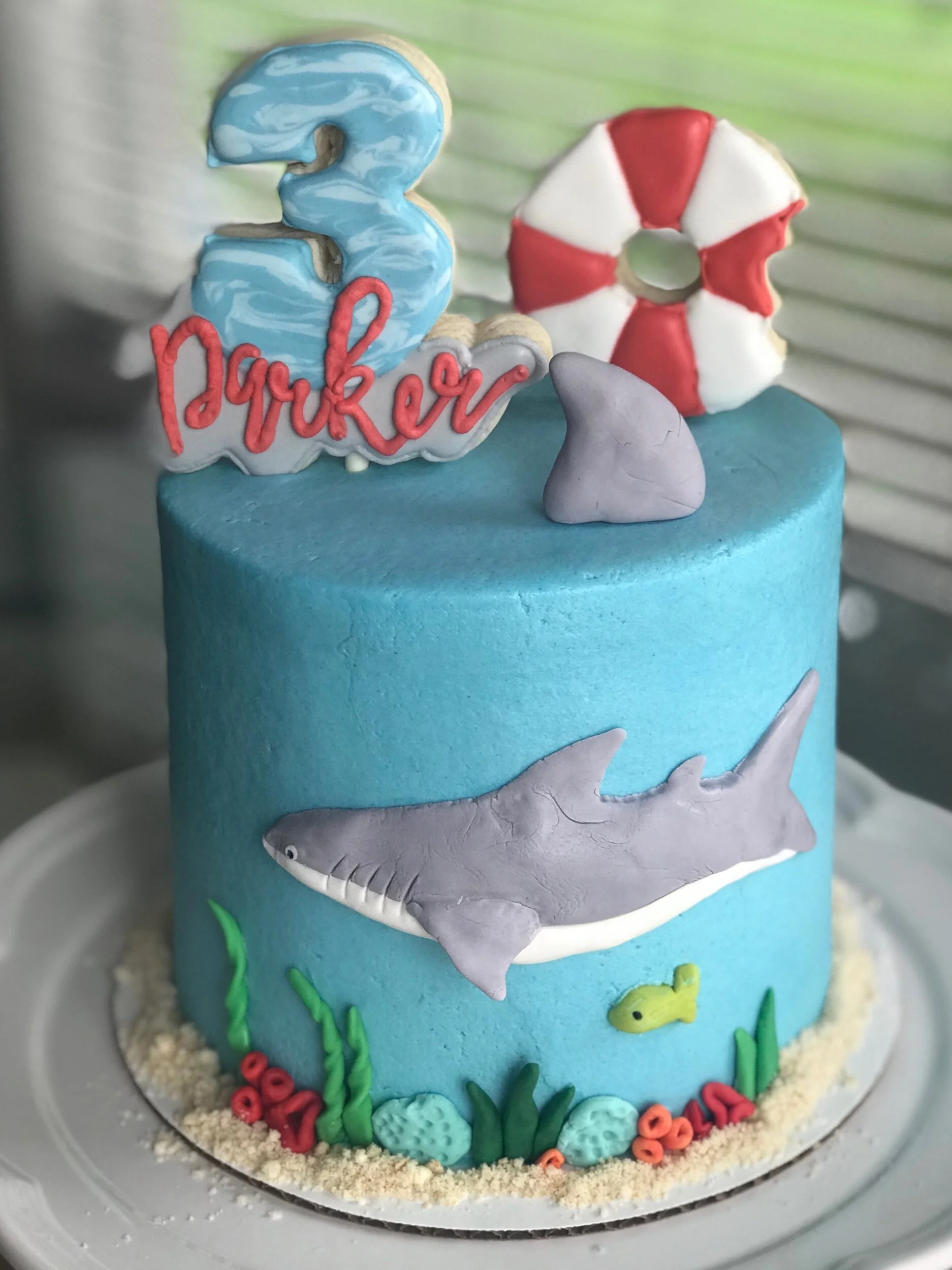 Happy Birthday Parker!! Look out for those sharks this summer! Thank you Ashlee Odom😁! #SharkCake #SharkCookies #cookies #royalicing #decoratedcookies #sugarcookies #sweetlyinspired #cupcakes #cakes #TampaSmallBusiness #supportsmallbusiness #RoyalIcingCookies www.sweetlyinspiredlife.com