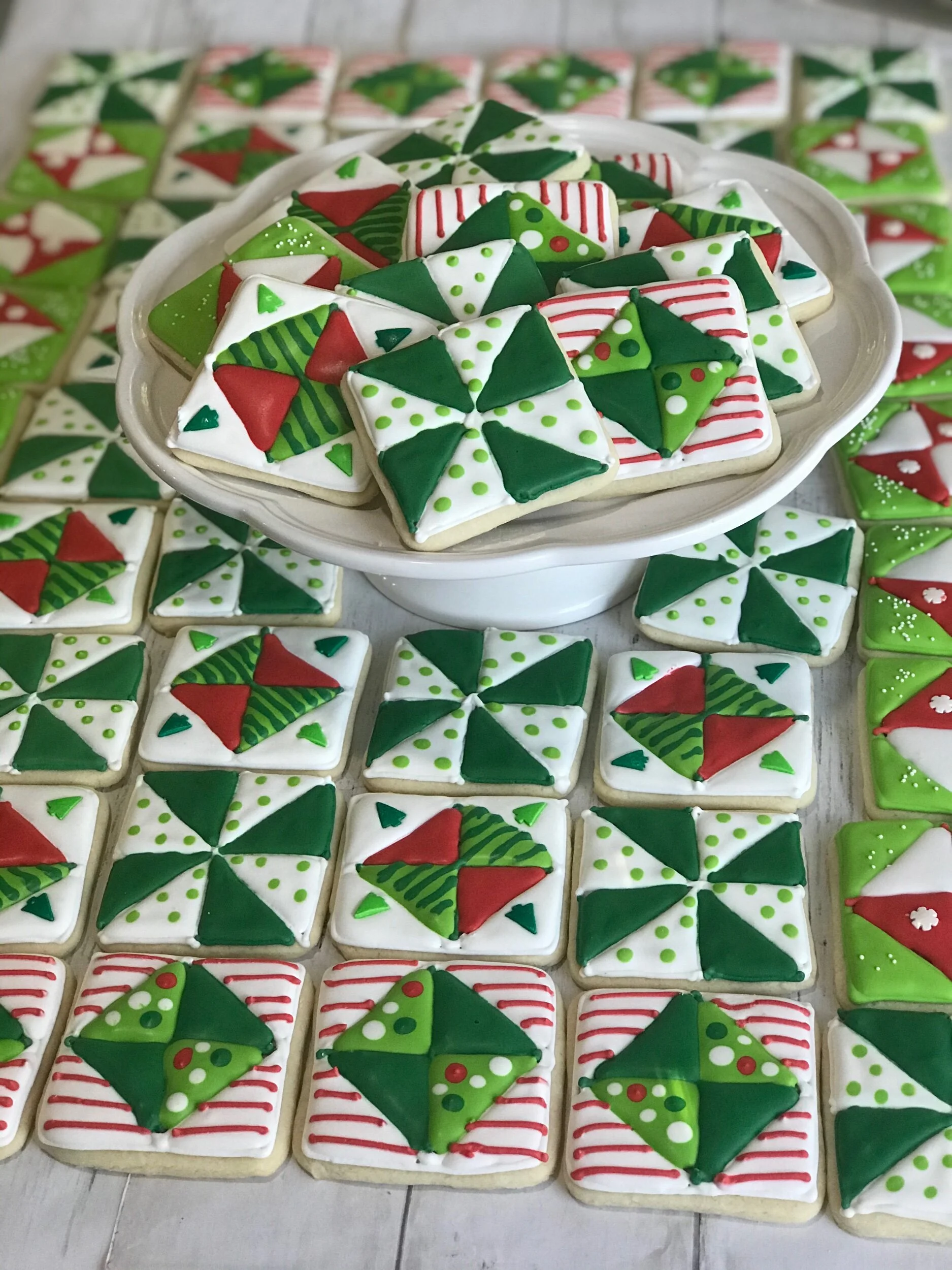 This quilting group is receiving a little sweet treat this Christmas! Thank you so much Kathy Massarelli, it was so great seeing you and Paul!! #ChristmasCookies #QuiltCookies #cookies #royalicing #decoratedcookies #sugarcookies #sweetlyinspired #cupcakes #cakes #TampaSmallBusiness #supportsmallbusiness #RoyalIcingCookies www.sweetlyinspiredlife.com
