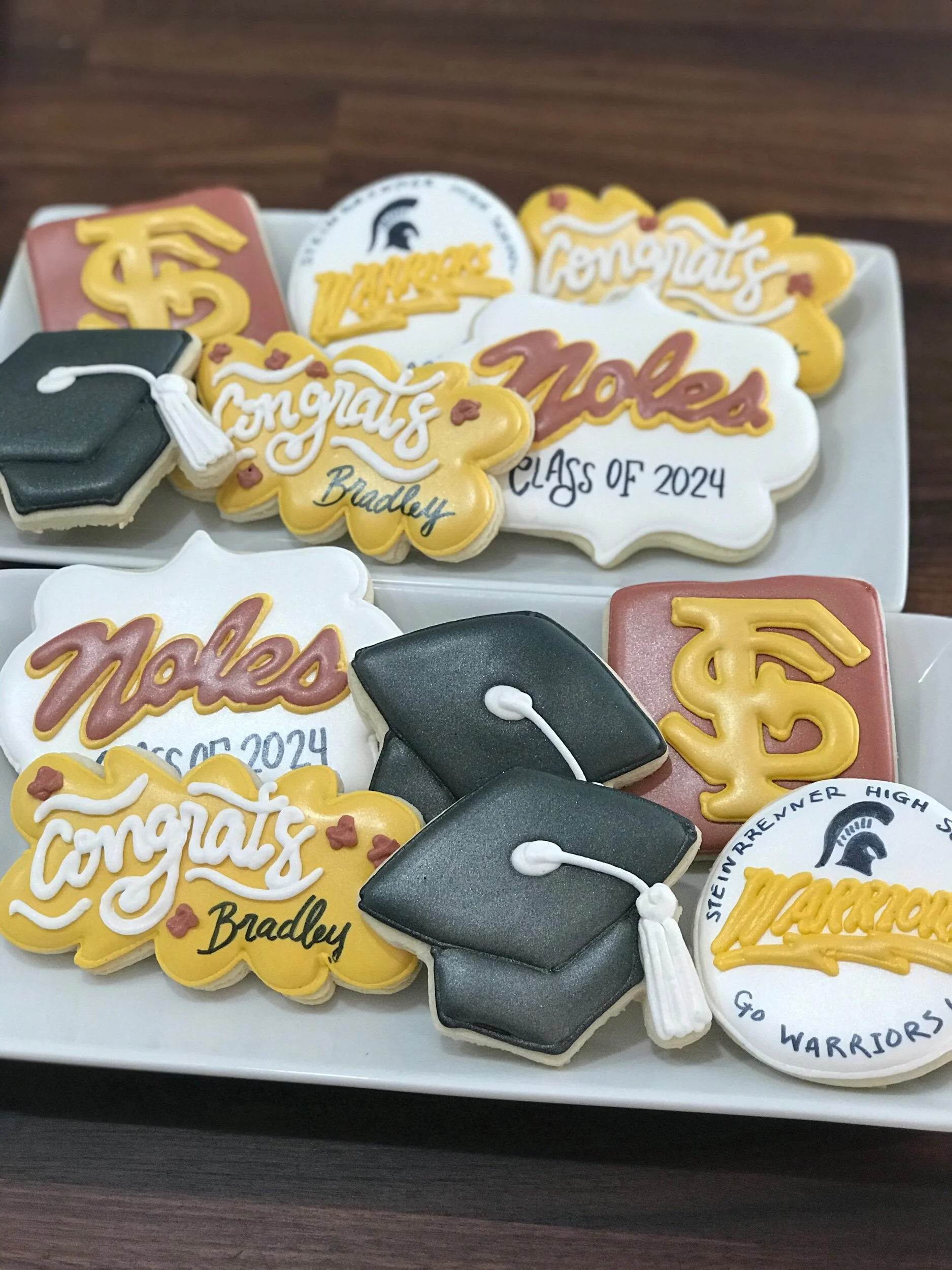 Congratulations Bradley and thank you so much Pam Mortellaro!!! I love helping create so extra sweetness for these grads😁 #FSU #FloridaState #GraduationCookies #FSUCookies #GoNoles #cookies #royalicing #decoratedcookies #sugarcookies #sweetlyinspired #cupcakes #cakes #TampaSmallBusiness #supportsmallbusiness #RoyalIcingCookies www.sweetlyinspiredlife.com