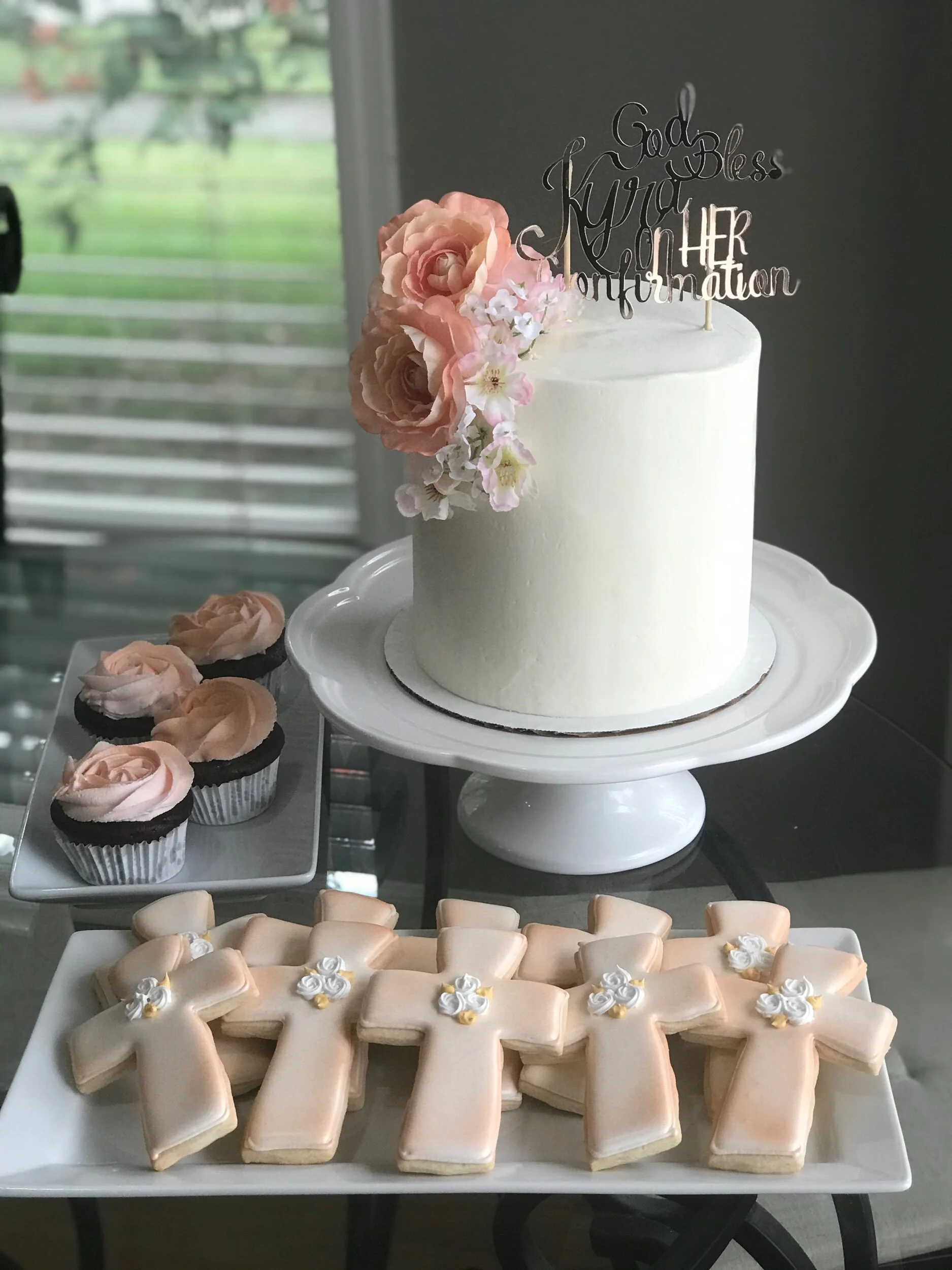 Celebrating her Confirmation! God bless you Kyra, we love you!! Thank you so much Kim Freeman!! #ConfirmationCookies #ConfirmationCake #CrossCookies #cookies #royalicing #decoratedcookies #sugarcookies #sweetlyinspired #cupcakes #cakes #TampaSmallBusiness #supportsmallbusiness #RoyalIcingCookies www.sweetlyinspiredlife.com