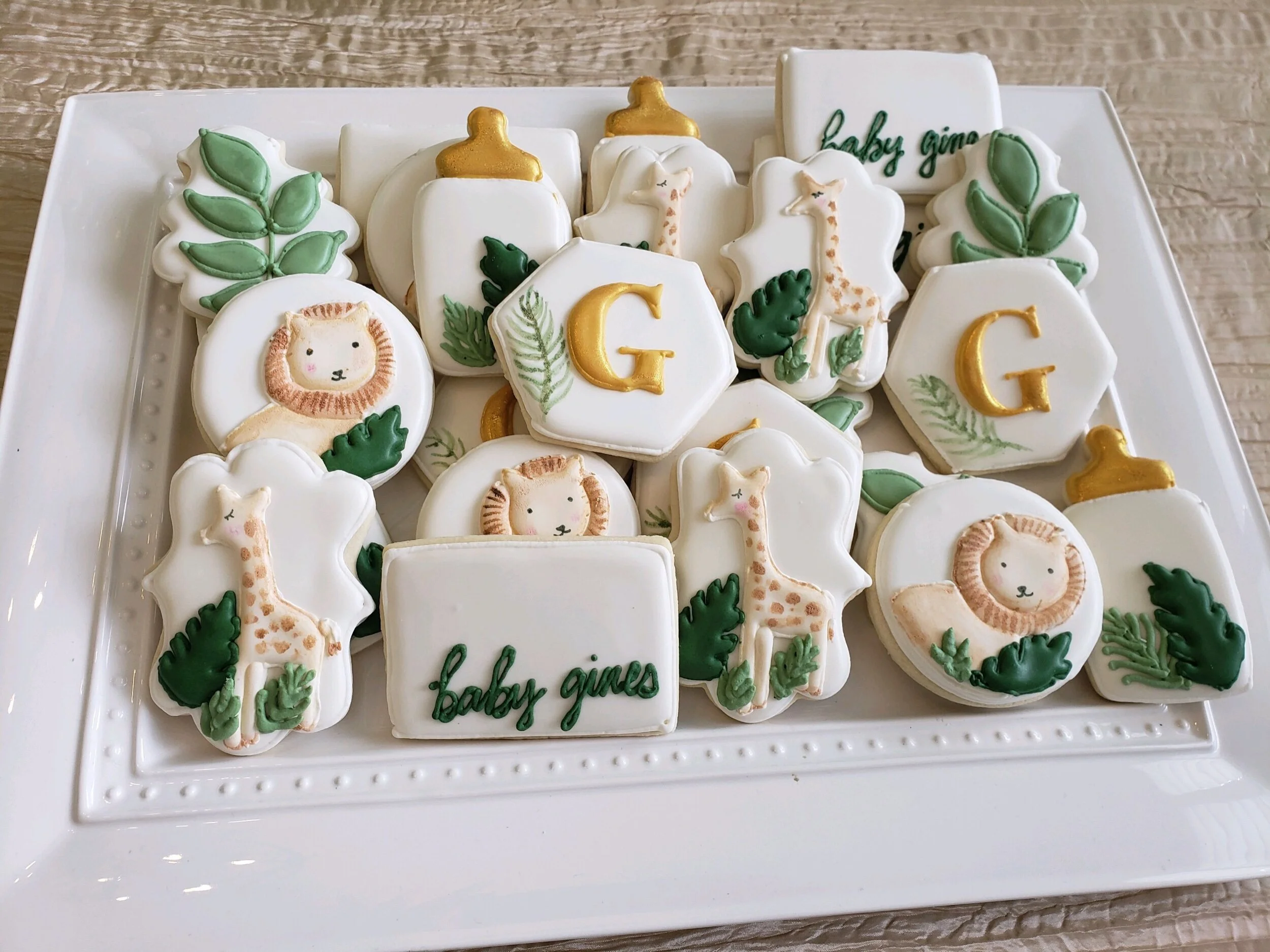 Oh baby, this shower was adorable! Thank you so much Pat Barr for this order it was so fun!!! #safaribabyshower #safaricake #safaricookies #cookies #royalicing #decoratedcookies #sugarcookies #sweetlyinspired #cupcakes #cakes #TampaSmallBusiness #supportsmallbusiness #RoyalIcingCookies www.sweetlyinspiredlife.com