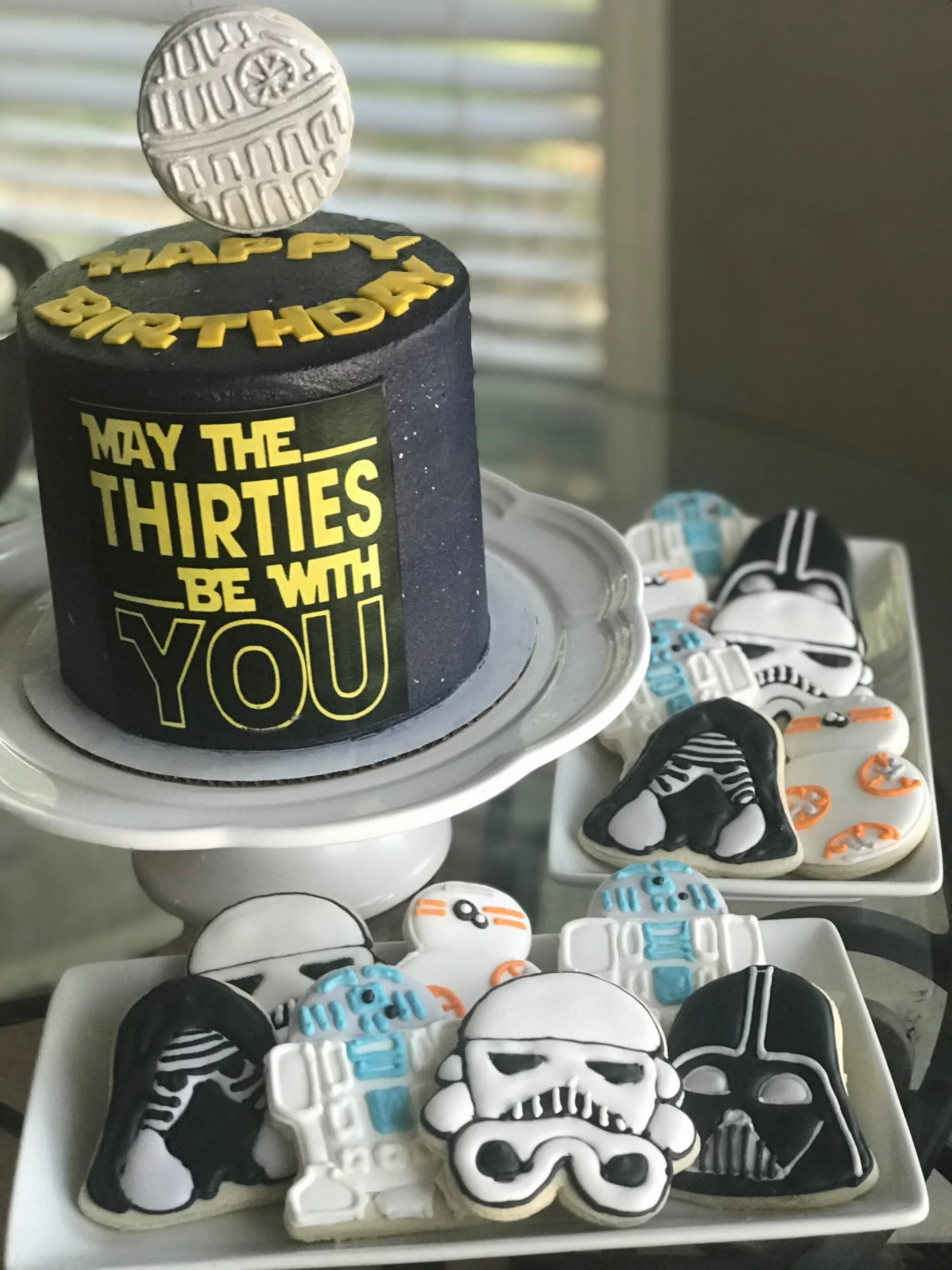 May the THIRTIES be with you!! What a fun surprise birthday for this guy! Thank you Nikki Martin ! #starwarscake #starwarscookies #cookies #royalicing #decoratedcookies #sugarcookies #sweetlyinspired #cupcakes #cakes #TampaSmallBusiness #supportsmallbusiness #RoyalIcingCookies www.sweetlyinspiredlife.com