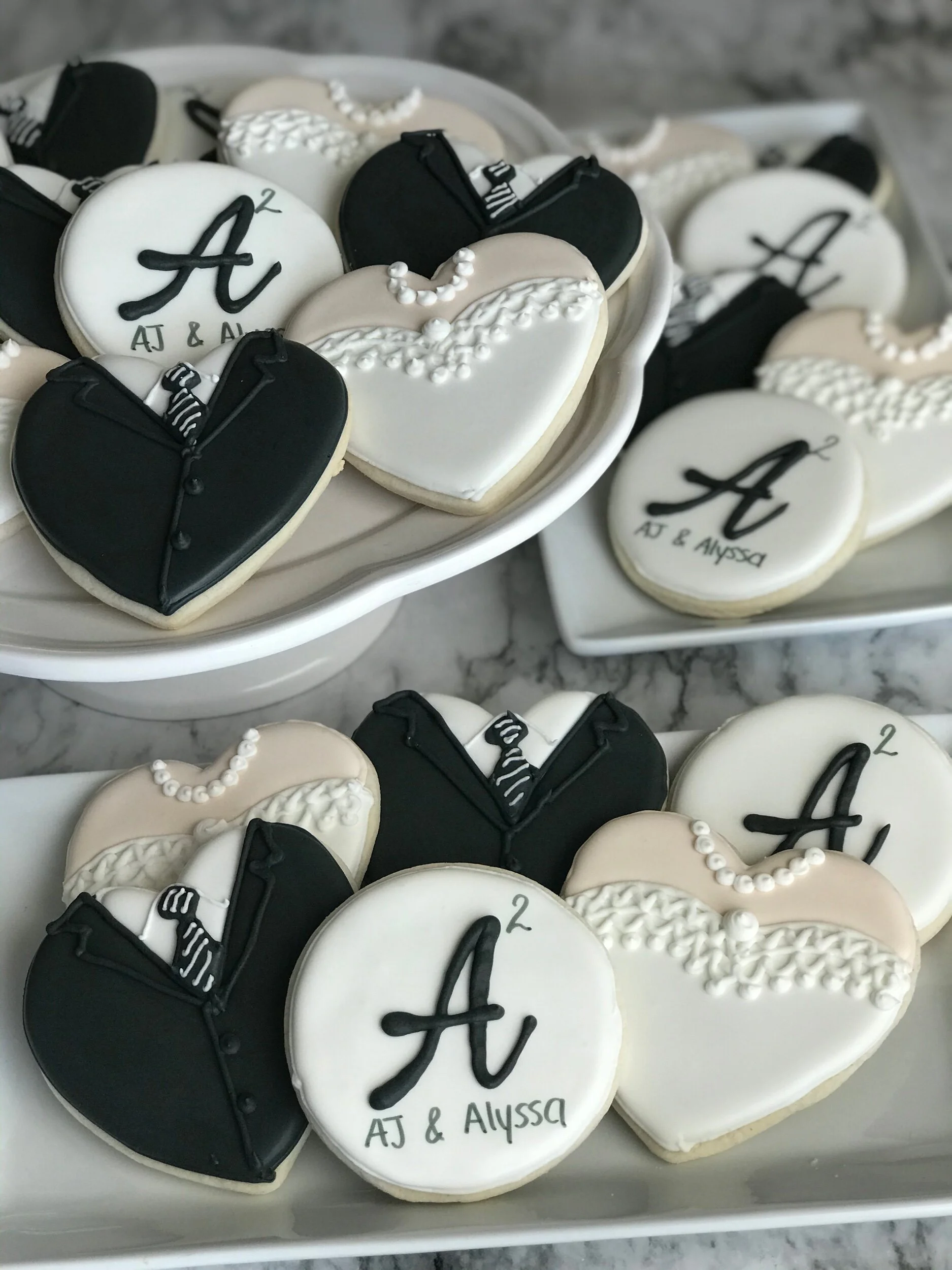 Congratulations AJ & Alyssa and Thank you Katie Kuhn!! #weddingcookies #cookies #royalicing #decoratedcookies #sugarcookies #sweetlyinspired #cupcakes #cakes #TampaSmallBusiness #supportsmallbusiness #RoyalIcingCookies www.sweetlyinspiredlife.com