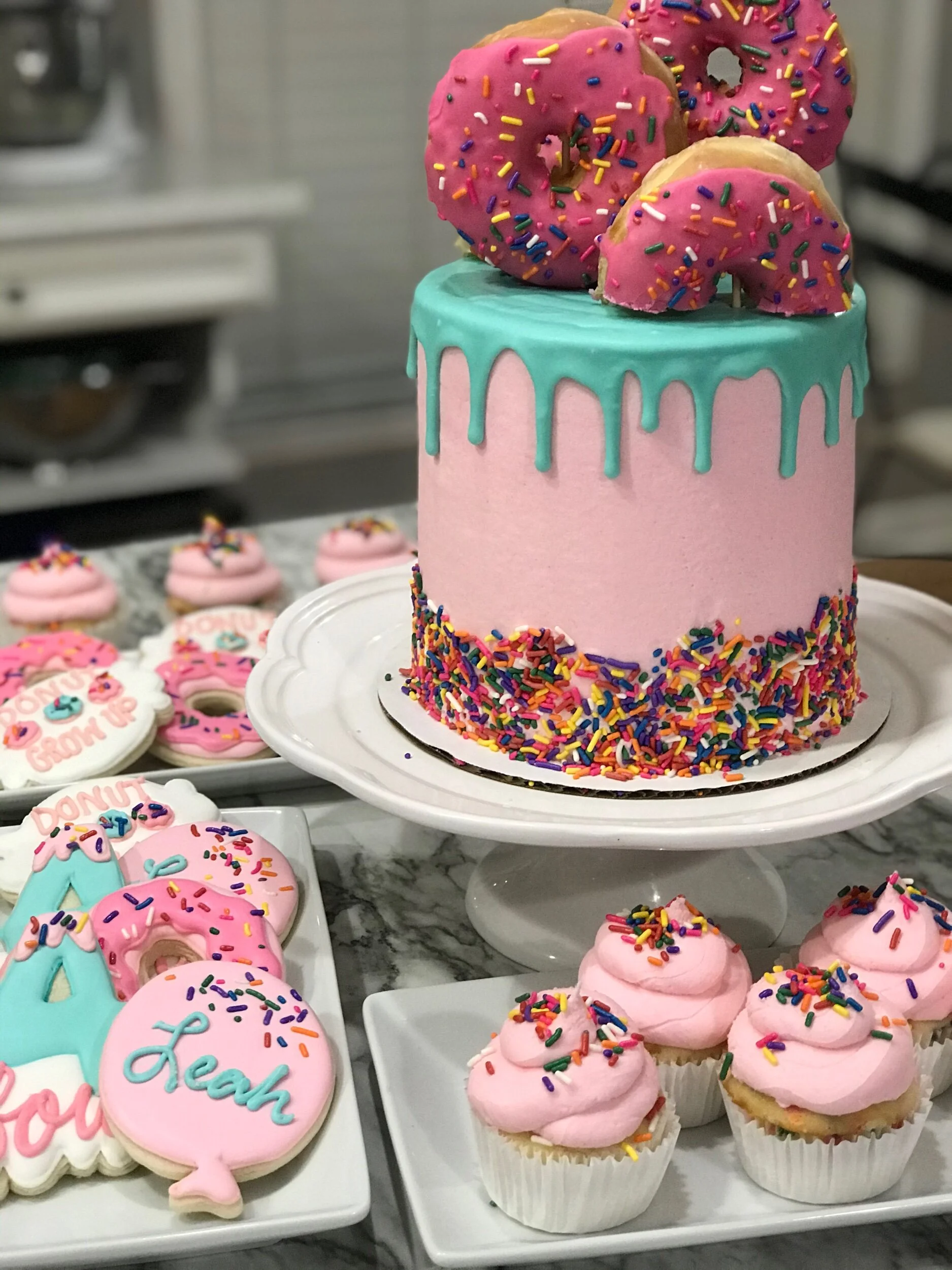 Donuts and cake.... not sure which I love more!!❤️😆 #donutgrowup #donutparty #donutcookies #donutcake #cookies #royalicing #decoratedcookies #sugarcookies #sweetlyinspired #cupcakes #cakes #TampaSmallBusiness #supportsmallbusiness #RoyalIcingCookies www.sweetlyinspiredlife.com